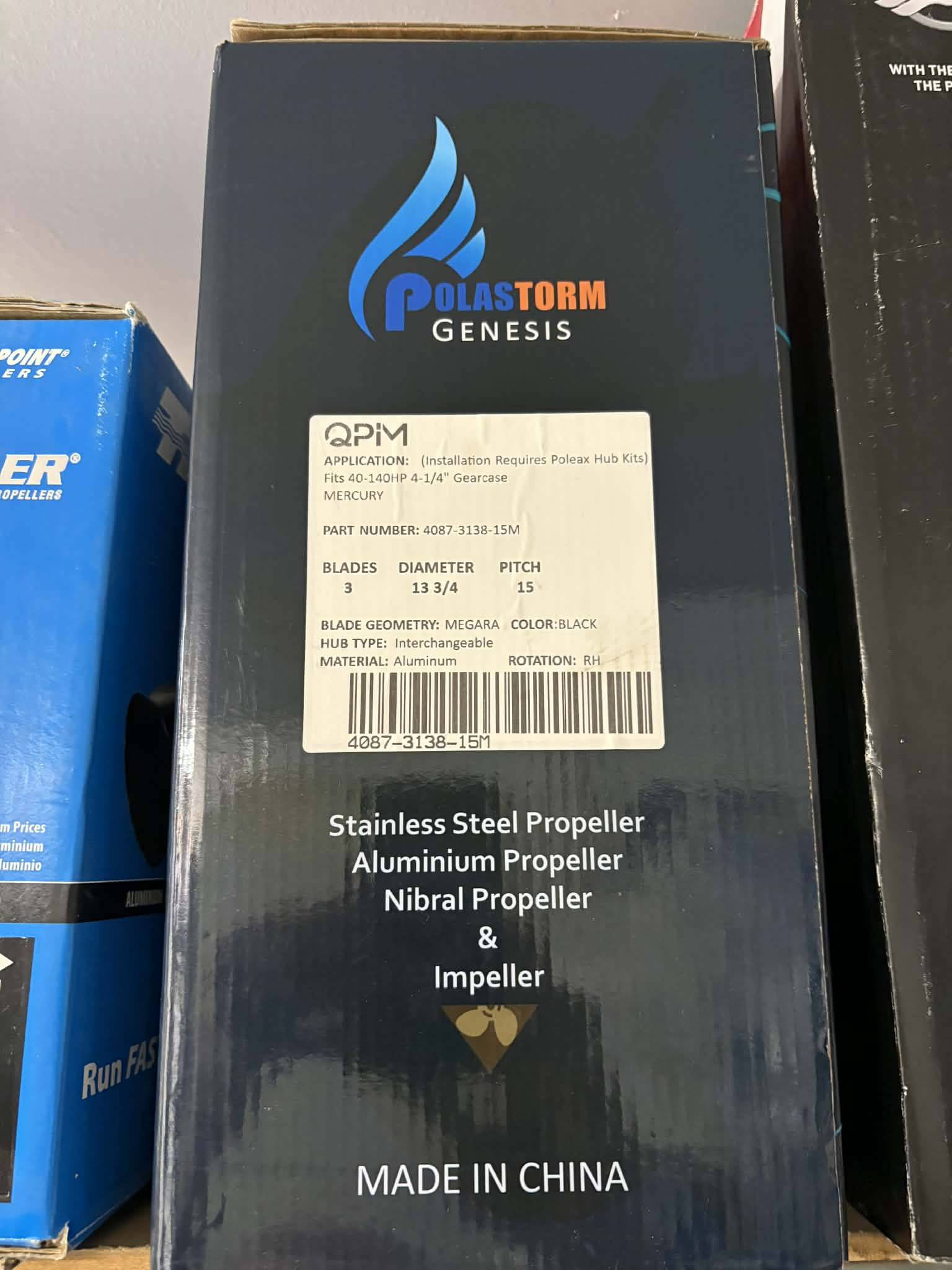 Alu propel Mercury Blade: 3 Diameter: 13 3/4 Pitch: 15 Farve: sort Materiale: aluminium Fits 40-140HP 4-1/4" Gearcase Mercury Rotation: RH Varenummer: 4087-3138-15m Mercury Gearcase: 4.25" Passer til: 40–140 HK
