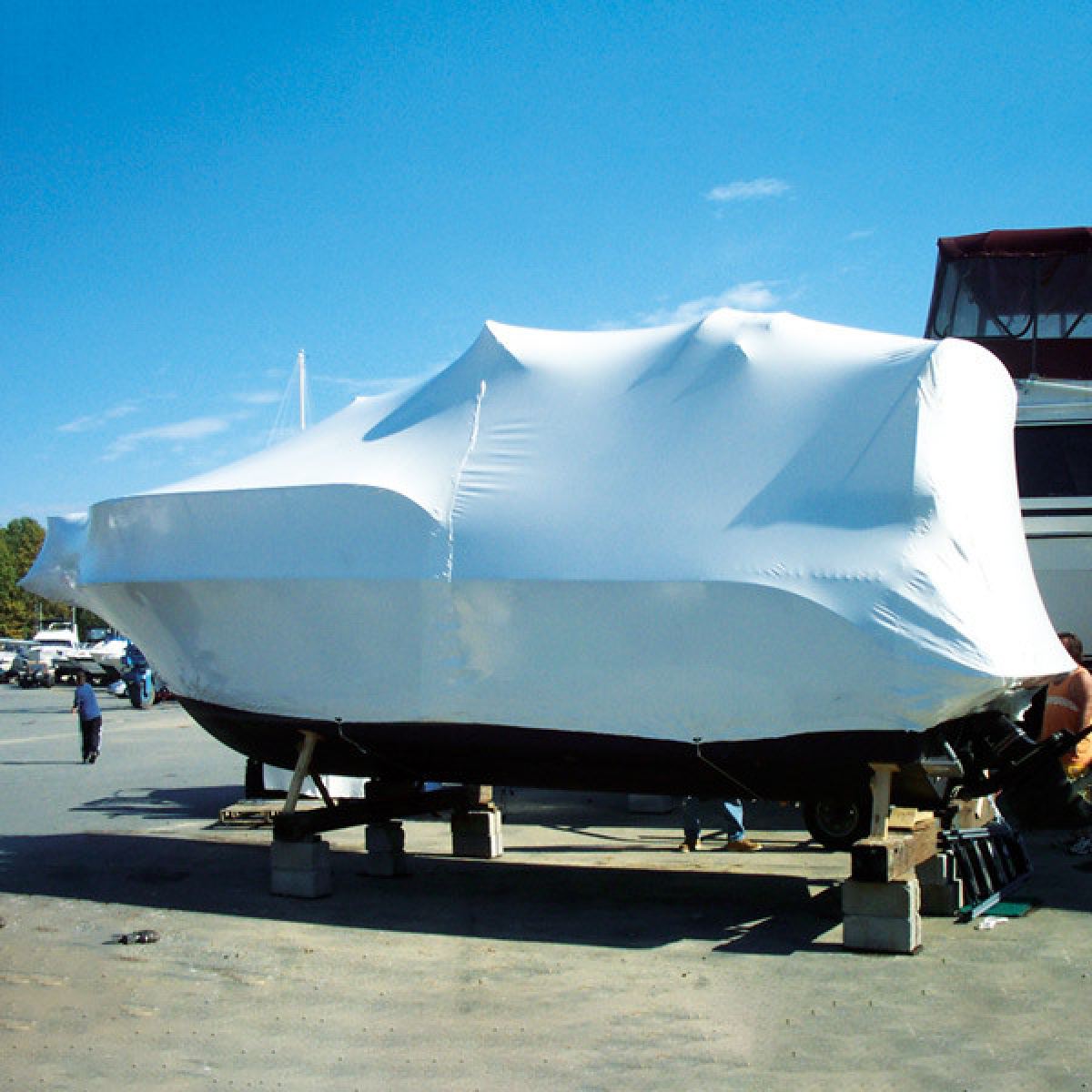 Krympefilm er et godt alternativ til presenninger og andre former for vejrbeskyttelse og giver både en tæt og effektiv indpakning. Filmen krympes på plads med en varmepistol. Ved hjælp af nedenstående tilbehør kan du nemt få en stabil konstruktion, der hverken samler vand eller sne.