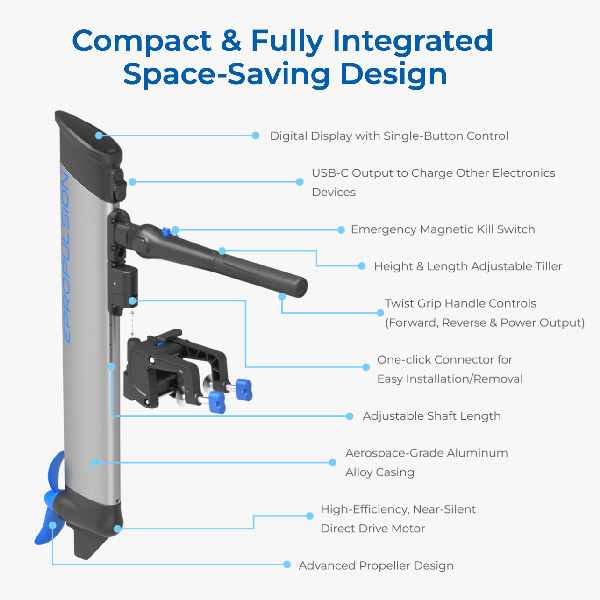 NY! ePropulsion eLite el-påhængsmotor 500W med integreret batteri